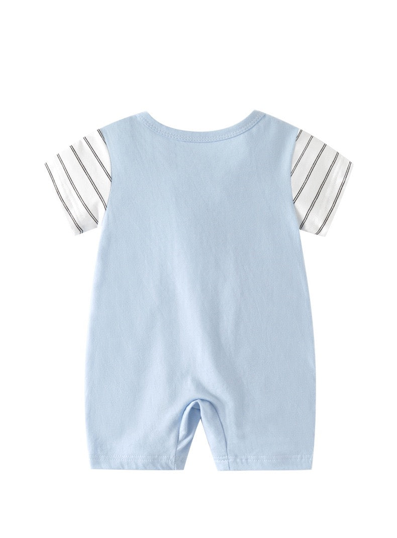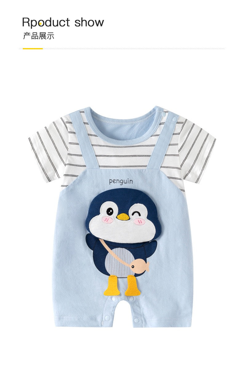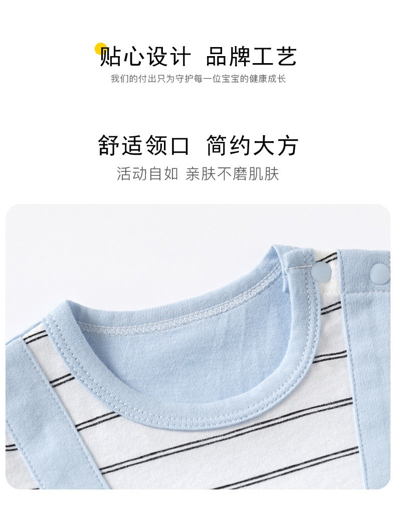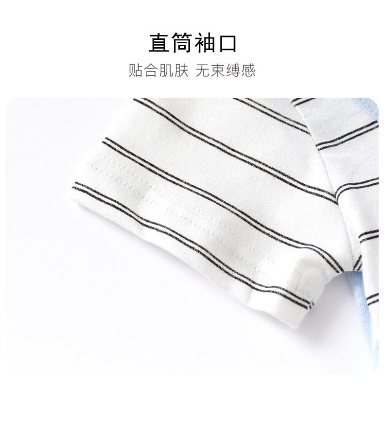 蓝条纹企鹅短袖 0-24m